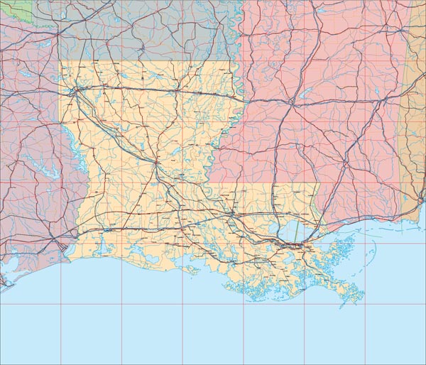 Vector only EPS map of Louisiana