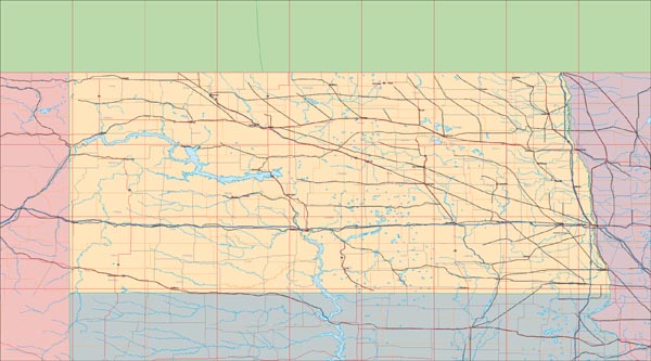 Detail view of EPS Vector Map of North Dakota - the land fill color is switched on.